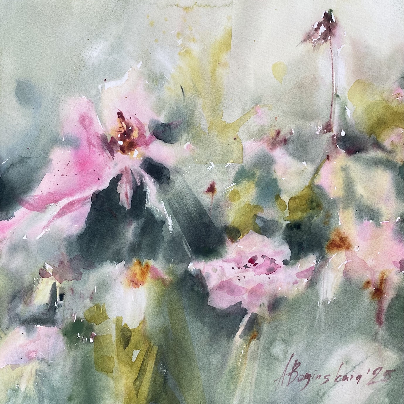 The floral motifs are no coincidence. Observing nature teaches us so much—it brings us closer to ourselves. In watercolor, as in silence, form matters less than the state of being. Water and light, the main elements of this delicate dance, create a fleeting boundary between what is seen and what is felt.